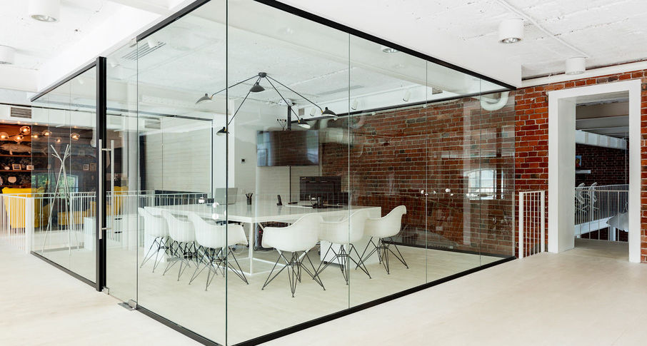 Unlike brick walls or drywall partitioning, glass allows light to flow into work spaces and meeting rooms, while containing the sound and activity into specific areas.